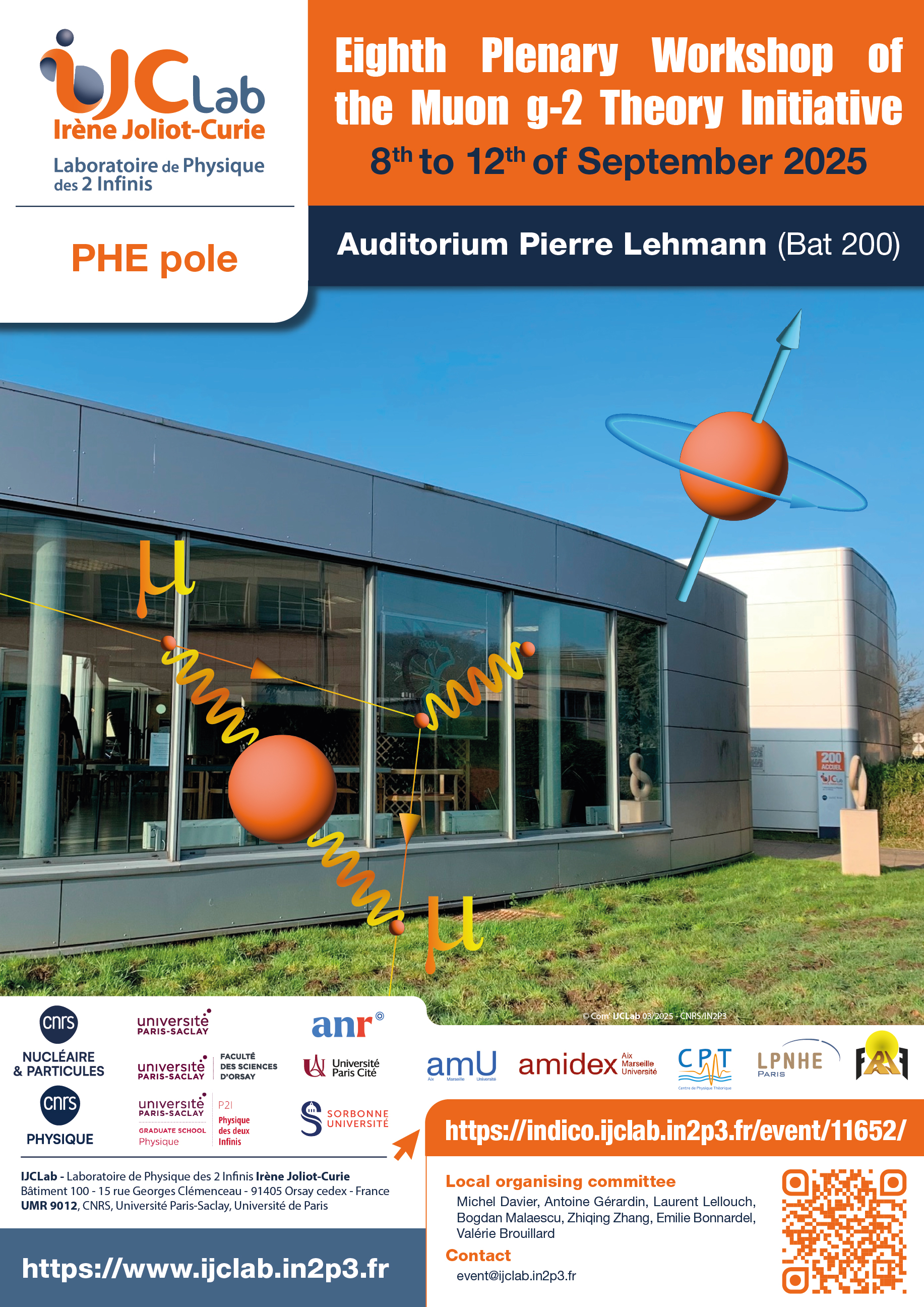 The Eighth Plenary Workshop of the Muon g-2 Theory Initiative, jointly organised by CPT, IJCLab and LPNHE, will be held at IJCLab from 8th to 12th of September 2025. The anomalous magnetic moment of the Muon (Muon g-2) has been receiving great attention, particularly in light of the final result from Fermilab’s E989 experiment and of the intense theoretical effort to match its precision, as well as new forthcoming precision measurements of the dominant two-pion channel. The workshop aims at discussing recent progress on these developments and future prospects.